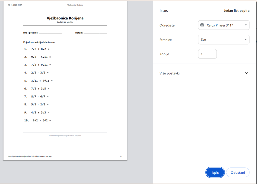 6. Sljedeća jednadžba — aplikacija genira novu, drugačitu. Ponavljate koliko god trebate.